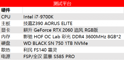 使用I7-9700K处理器、Z390主板、高速NVME固态以及双8G双通道3600MHz高频内存,保证其他硬件不影响显卡性能发挥。