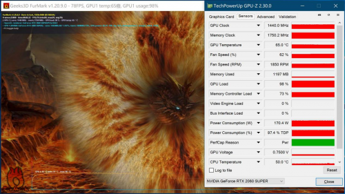 使用FurMark对显卡进行功耗测试,结果如下图所示: