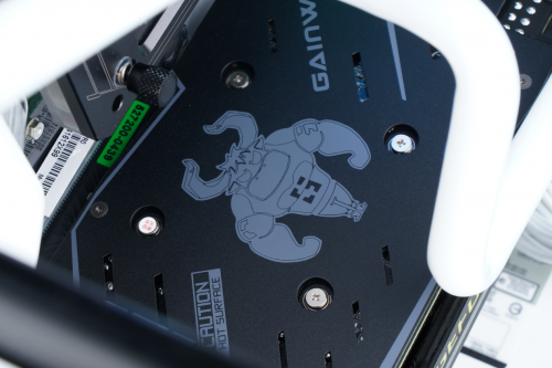 显卡整体延续耕升经典外观设计,红黑配色低调有内涵,背部搭载追风RGB专属背板,全金属背板非常牢固,可以有效防止PCB弯曲。